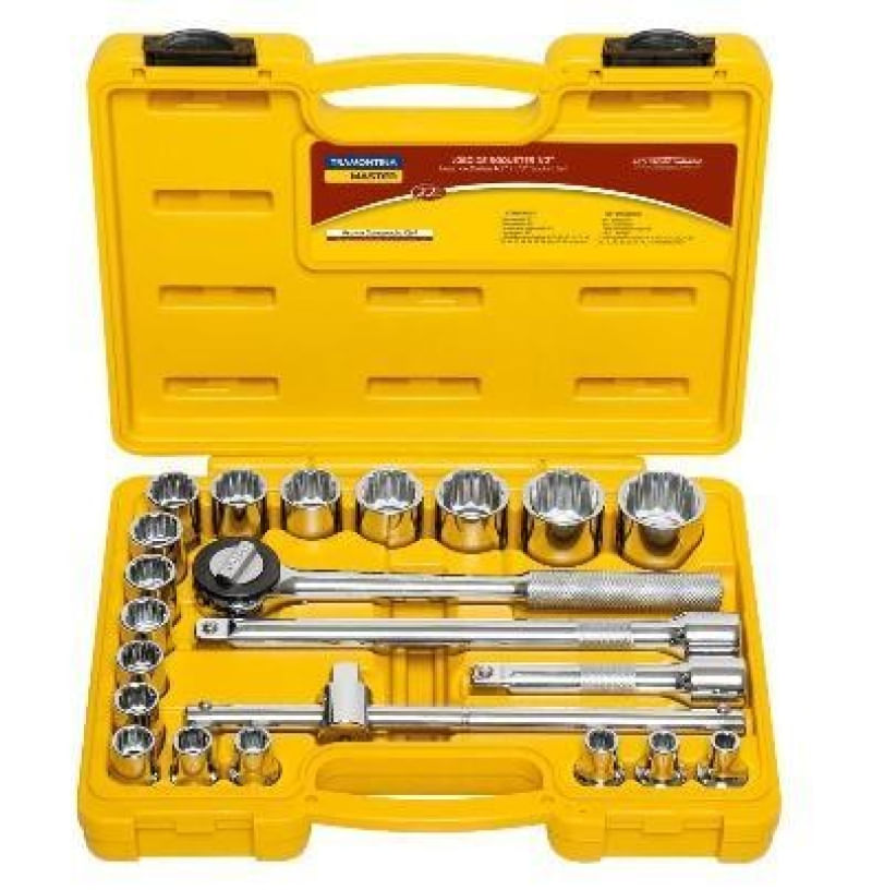 Ferramentas e ConstruçãoFerramentasFerramentas manuais"Jogo de Soquetes Estriados Encaixe 1/2"" 22 Peças 8 a 32mm Tramontina 43600022"