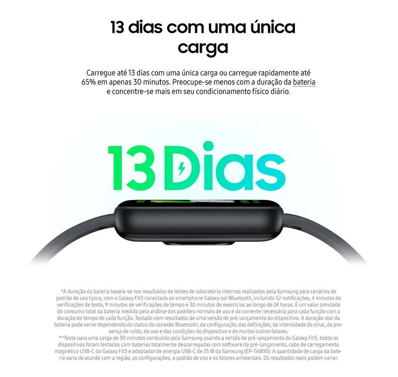 Eletrônicos e TecnologiaTelefoniaSmartwatch e Smartband"Relógio Smartwatch Samsung Galaxy Fit3 Display 1.6"" Bateria Longa Duração - Preto"