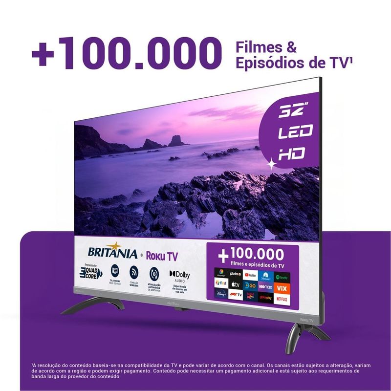"Smart TV 32"" HD Britânia B32KRA Roku TV Wi-Fi Dolby Audio" REF: 7891356125430