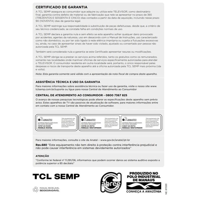 "Smart TV 75"" 4K TCL 75P6K Google TV HDR10+ Processador AiPQ" REF: 7899968301921