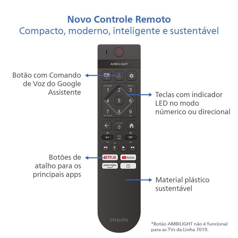"Smart TV LED 86"" Ultra HD 4K Philips 86PUG7019/78 com Google TV, Comando de Voz, Wi-Fi, Entradas HDMI e USB" REF: 7898620272661