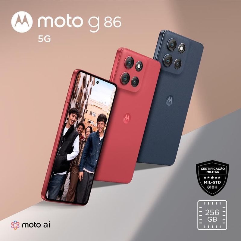 Eletrônicos e TecnologiaTelefoniaSmartphones"Smartphone Motorola Moto G86 5G Tela 6.7"" pOLED 256GB 8GB RAM Câmera 50MP 4K IP69 Desbloqueado Grafite"