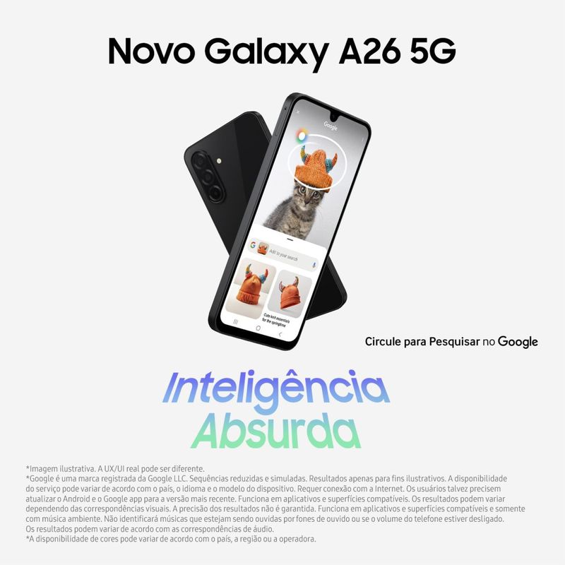"Smartphone Samsung Galaxy A26 5G 256GB 8GB RAM Tela 6.7"" Câmera Tripla 50MP Preto" REF: 7892509143370
