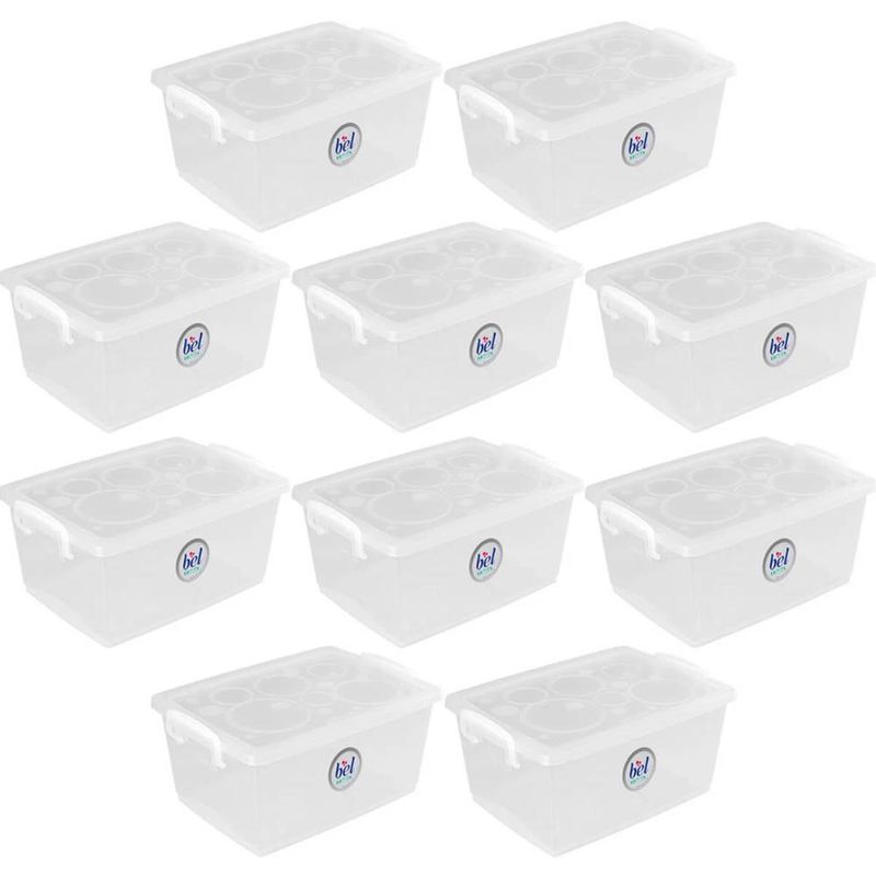 10 Caixas Organizadoras 4L Tampa Trava Escritórios Escolas Organizadores Multiuso Bel Ordene REF: 7798139734745