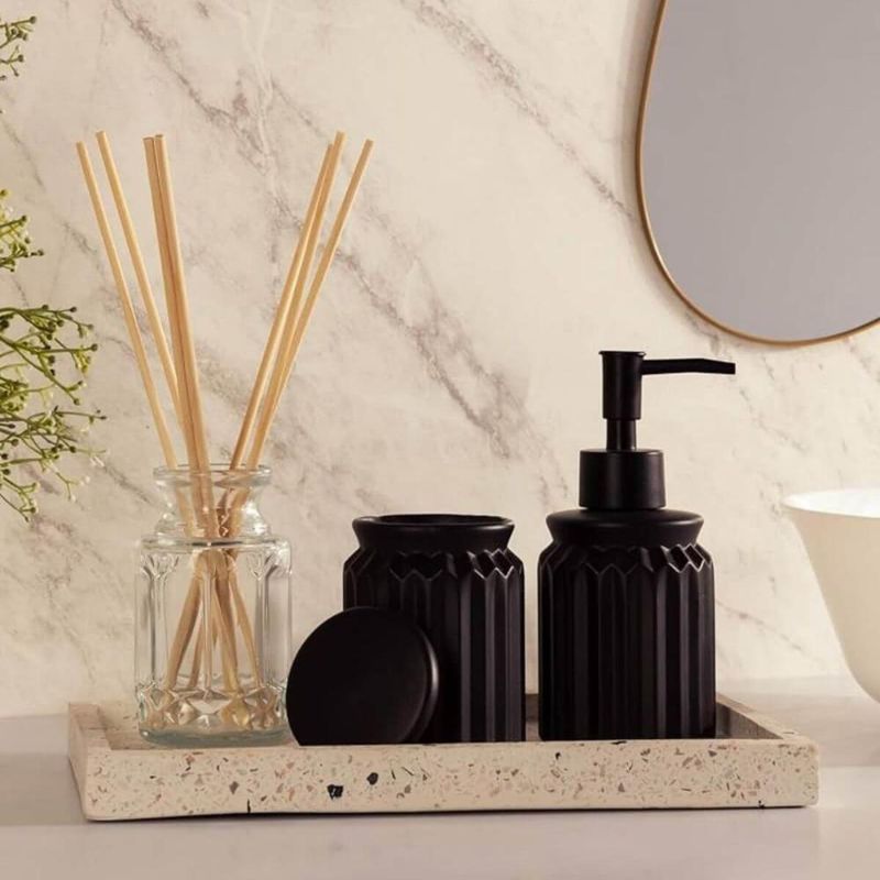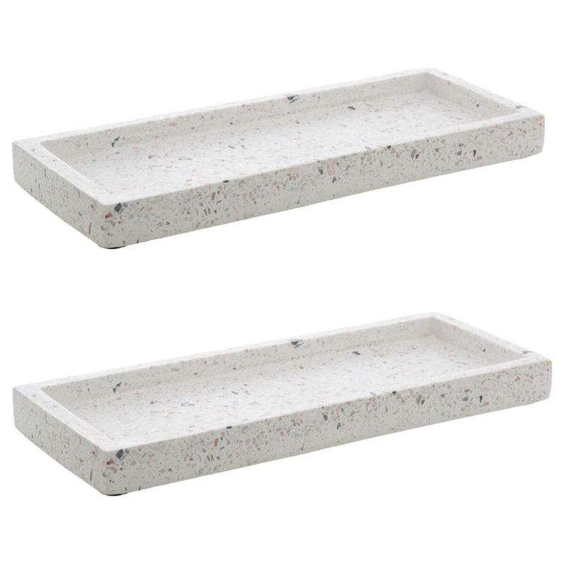 Casa e DecoraçãoUtilidades DomésticasAcessórios de Cozinha2 Bandejas de Mármore Terrazzo Retangular Aparador 26x17cm Decorativa Bancada Sala Banheiro Lyor