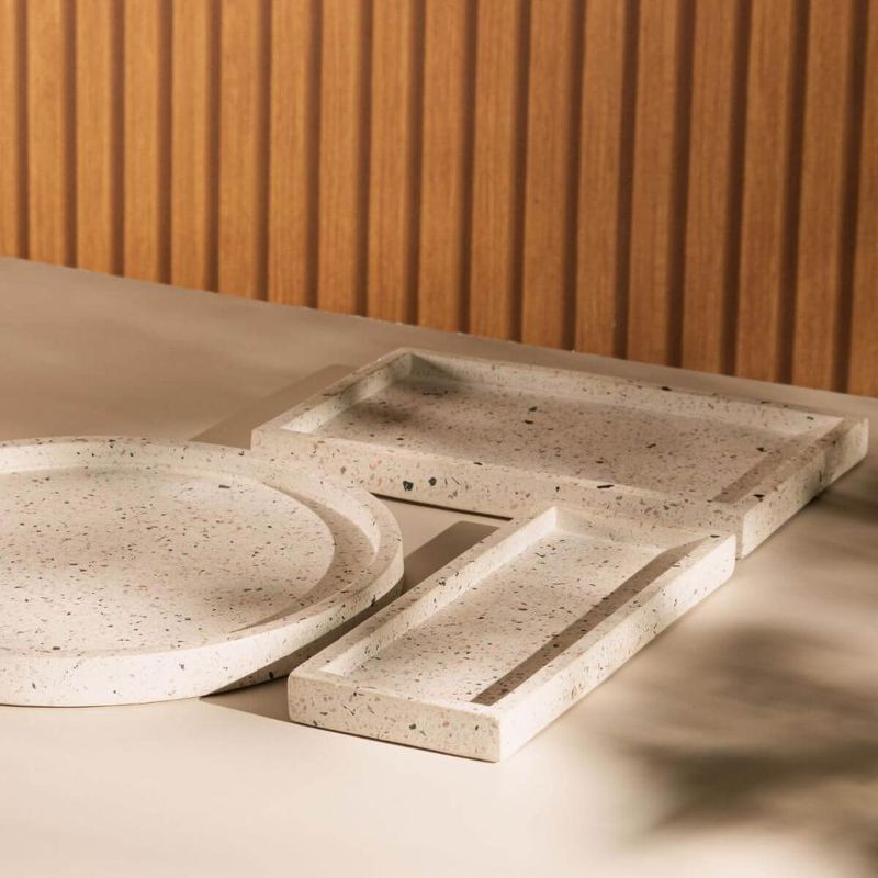 2 Bandejas de Mármore Terrazzo Retangular Aparador 26x17cm Decorativa Bancada Sala Banheiro Lyor REF: 7794463484103