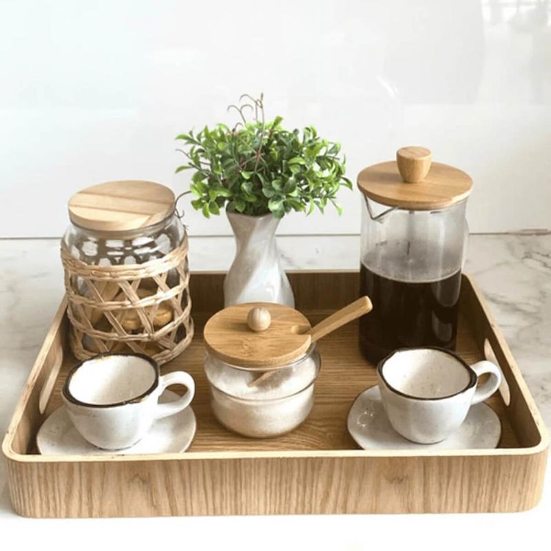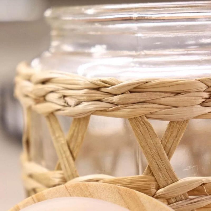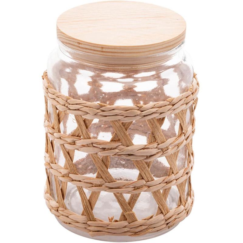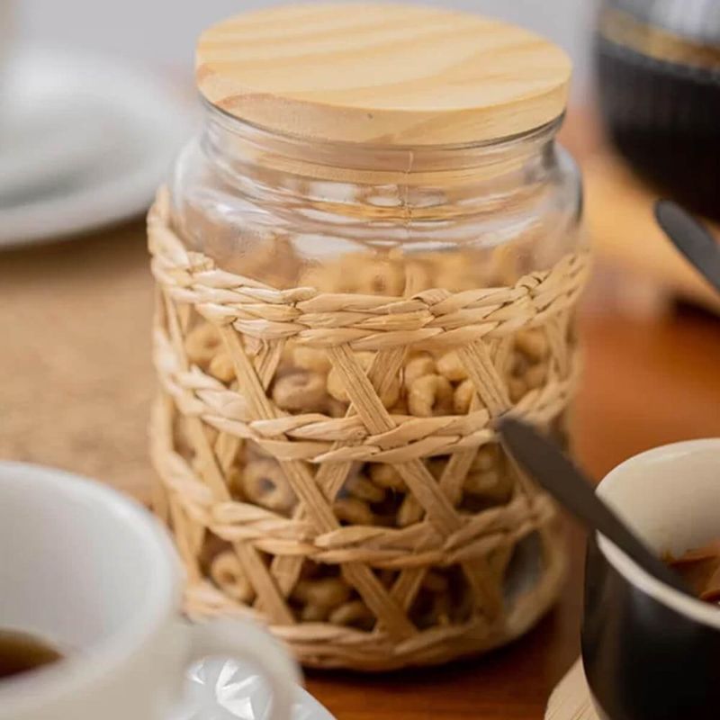 2 Potes Herméticos Vidro com Sisal Tampa Madeira Wolff 750ml Porta Mantimentos REF: 7798139574228