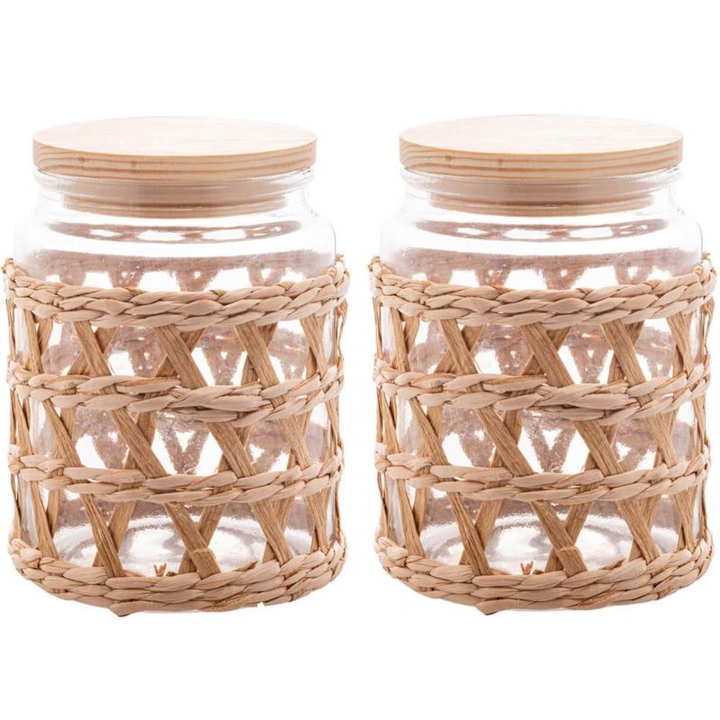 Casa e DecoraçãoUtilidades DomésticasAcessórios para Servir2 Potes Herméticos Vidro com Sisal Tampa Madeira Wolff 750ml Porta Mantimentos
