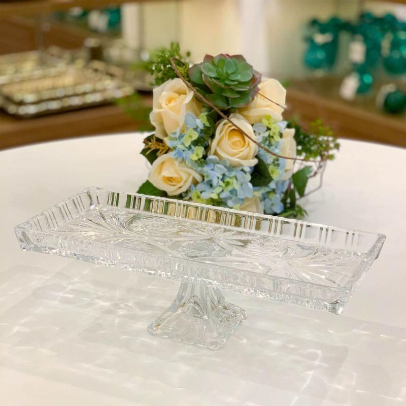 2 Travessas com Pé Boleira de Cristal 33x15x10cm Dragon Lyor Bandeja Decorativa REF: 7798138933620