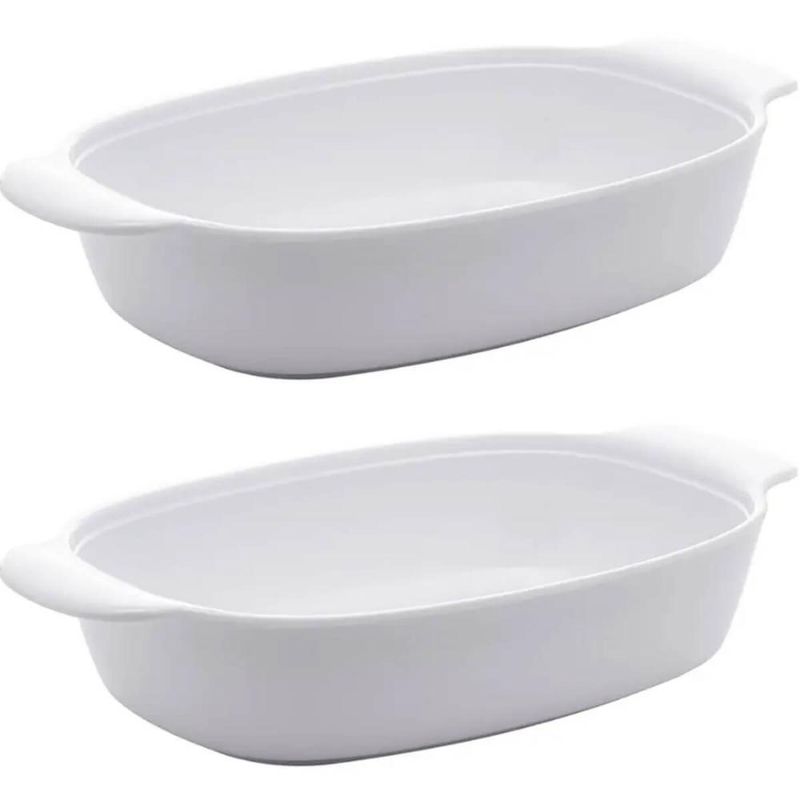 Casa e DecoraçãoUtilidades DomésticasAcessórios para Servir2 Travessas Melamina Branca com Alças 31,5cm Milão Lyor para Servir Guarnições Arroz