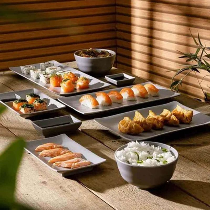 5 Travessas Bandejas de Melamina 29x14cm Servir Sushi Retangular Granilite Lyor REF: 7798140355168