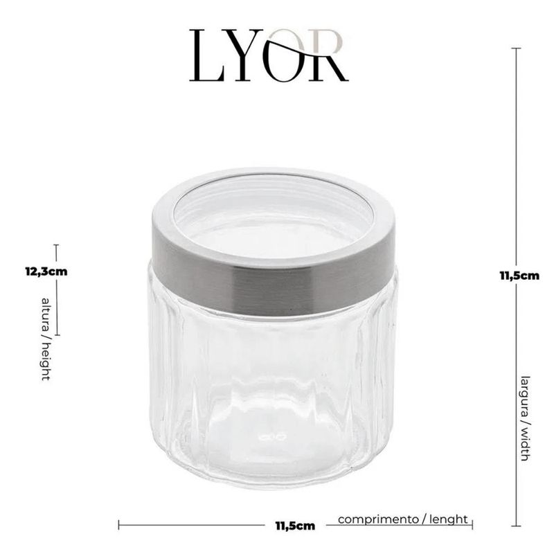 Casa e DecoraçãoUtilidades Domésticas6 Potes de Vidros com Tampa Inox 870ml Sydney Lyor Condimentos Biscoito