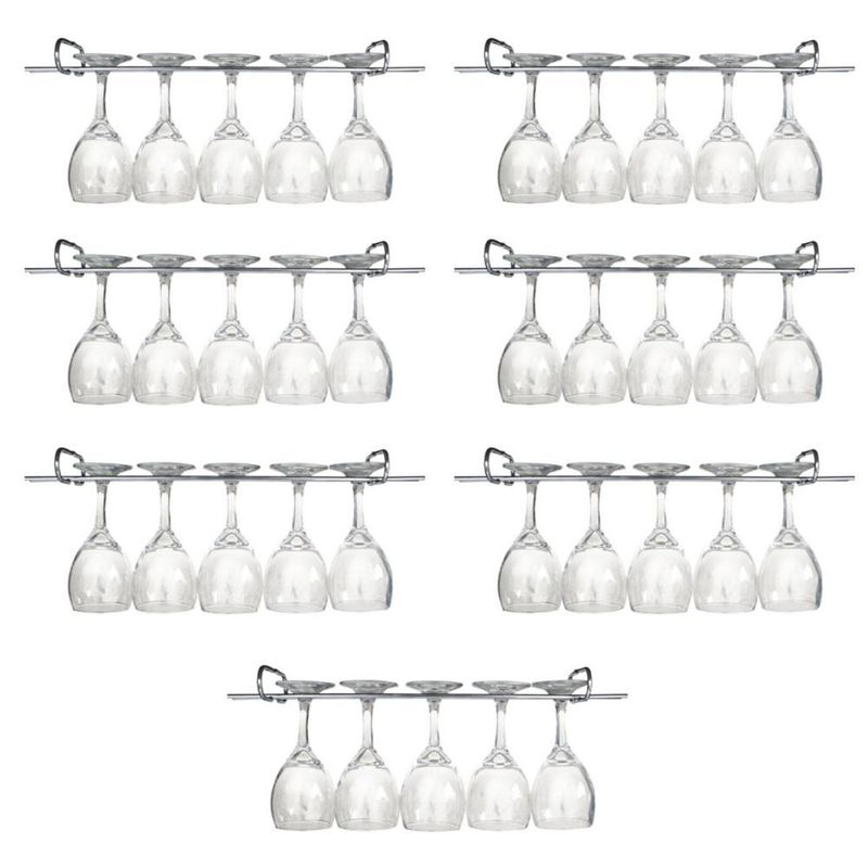 Casa e DecoraçãoUtilidades DomésticasBar e Acessórios7 Suportes Organizador De Armário Porta Taças Cromado 35cm