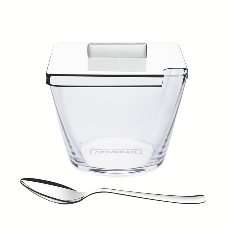 Açucareiro Tramontina Quadrata Transparente com Tampa e Colher em Inox REF: 7891116100707