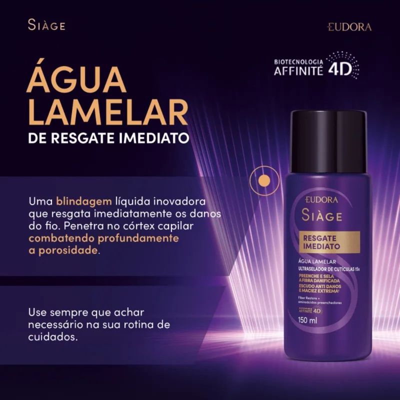 Beleza e SaúdeBelezaCuidados com o cabeloÁgua Lamelar Eudora Siàge Resgate Imediato 150ml