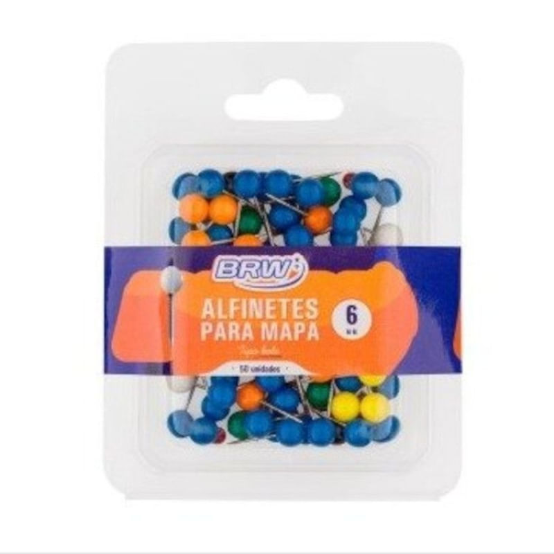 Alfinete Para Mapas - Cores Sortidas - 6Mm - 50 Un REF: 7898948807941