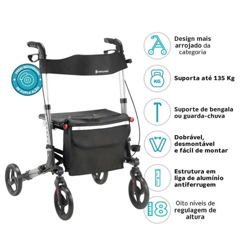 Andador de Alumínio Compacto 4 Rodas até 135 Kg D14 Dellamed REF: 702111_Sicredi