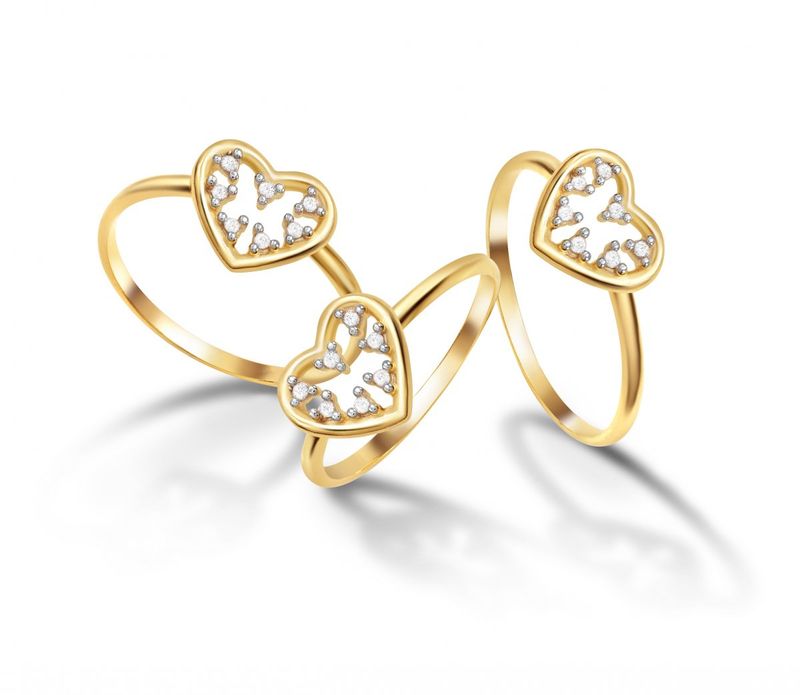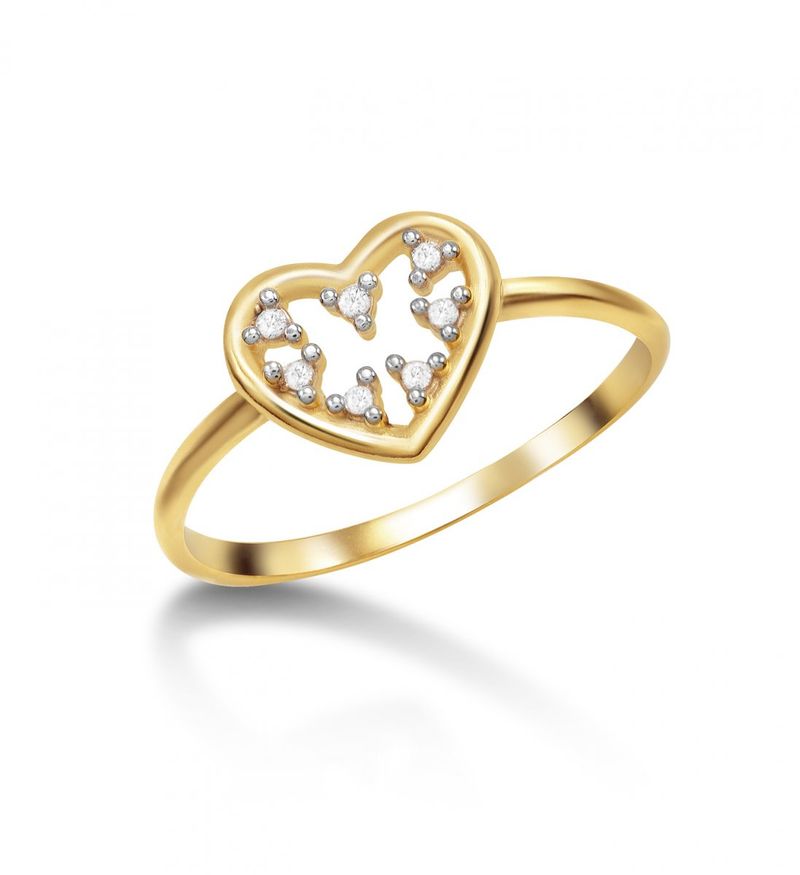 Anel Coração de Ouro 10k com Safiras Incolores REF: 746108_Sicredi