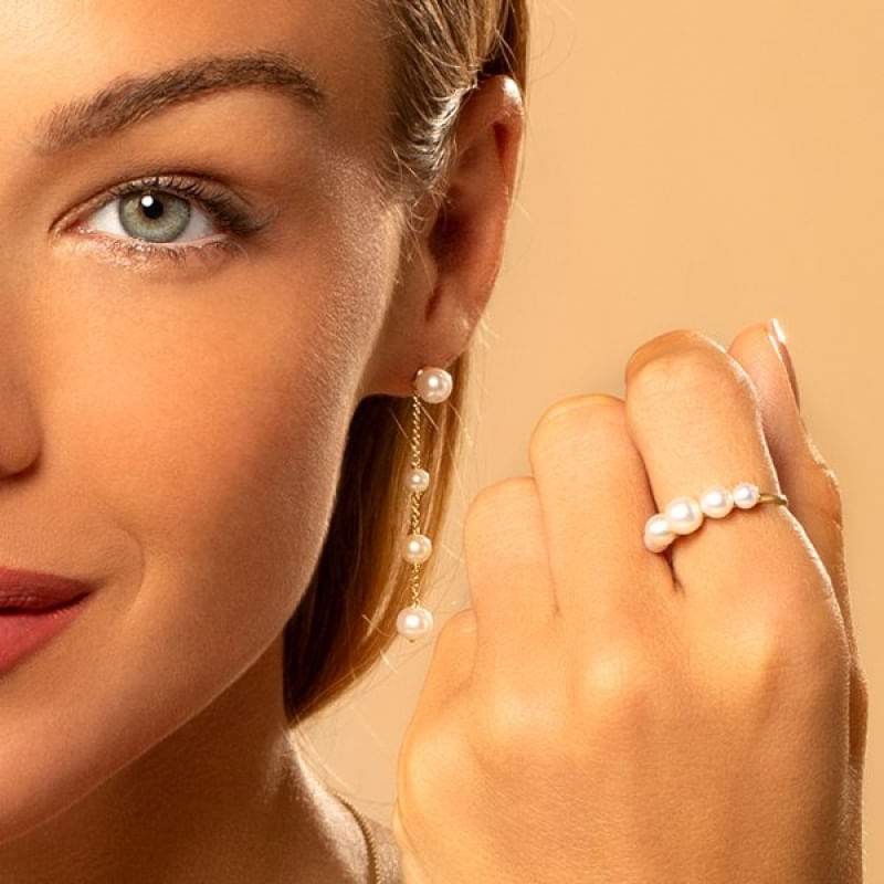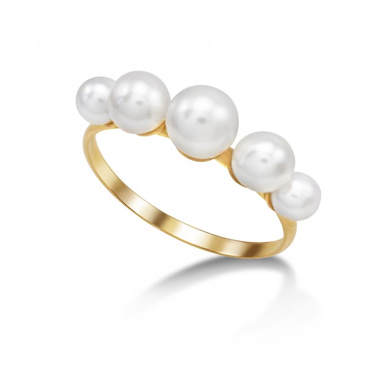 Anel meia aliança em Ouro 18k com Pérolas cultivadas de água salgada REF: 2051605001015