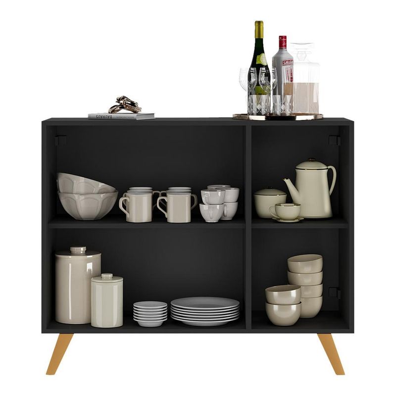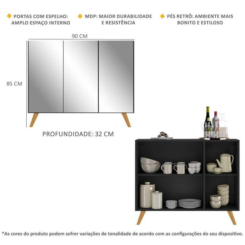 Aparador Buffet 3 Portas com Espelho Retrô Vegas Multimóveis MP1013 Preto/Natural REF: 772678_Sicredi