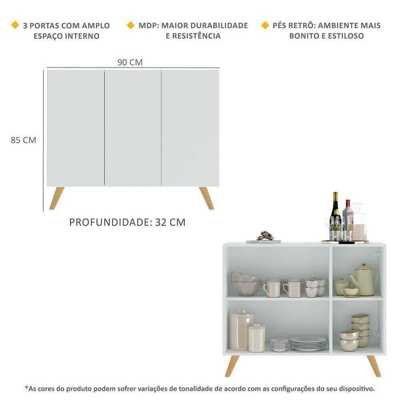Aparador Buffet 3 Portas Retrô Veneza Multimóveis MP1009 Branco/Natural REF: 762070_Sicredi