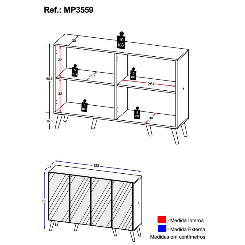 Casa e DecoraçãoMóveisBuffetAparador Buffet 4 portas c/ Espelho e Pés Retrô Vegas Multimóveis Rustic/Natural