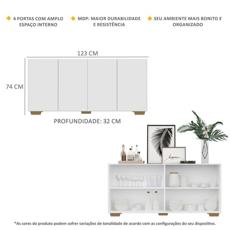 Casa e DecoraçãoMóveisBuffetAparador Buffet 4 Portas c/ Pés Quadrados Veneza Multimóveis Branco/Natural