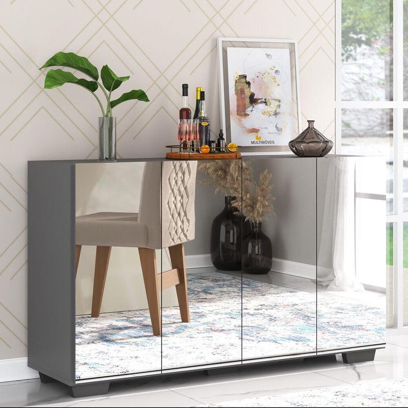 Aparador Buffet 4 portas com Espelho e Pés Quadrados Vegas Multimóveis Grafite/Preto REF: 769787_Sicredi