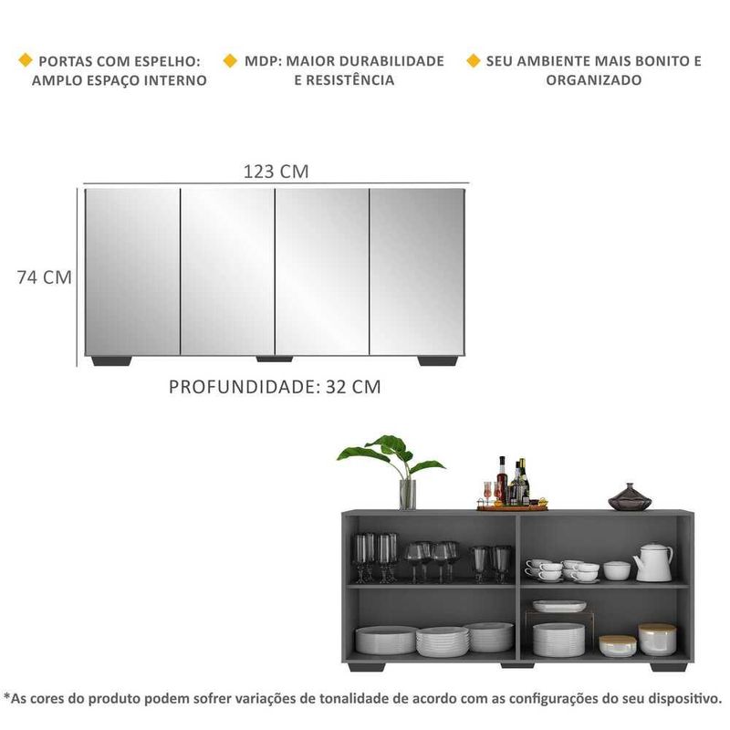 Casa e DecoraçãoMóveisBuffetAparador Buffet 4 portas com Espelho e Pés Quadrados Vegas Multimóveis Grafite/Preto