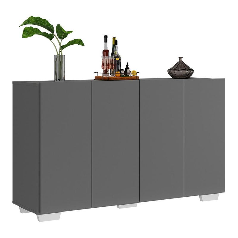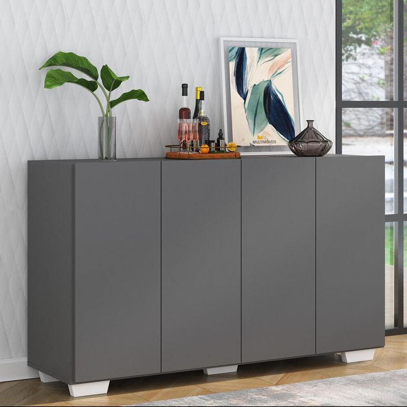 Aparador Buffet 4 Portas com Pés Quadrados Veneza Multimóveis Grafite/Branco REF: 568987_Sicredi