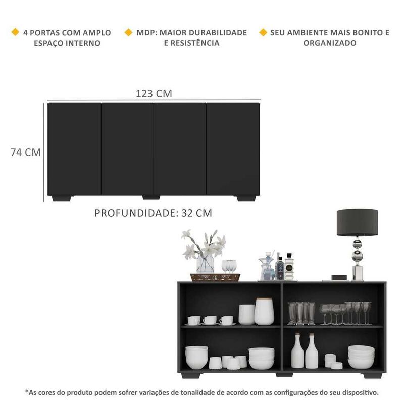 Casa e DecoraçãoMóveisBuffetAparador Buffet 4 Portas com Pés Quadrados Veneza Multimóveis Preto