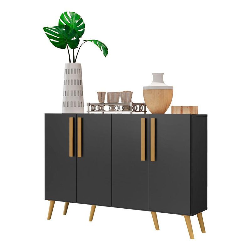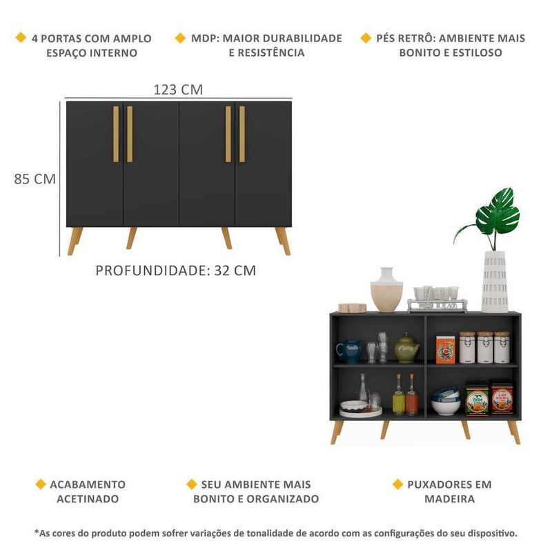 Casa e DecoraçãoMóveisBuffetAparador Buffet 4 Portas com Pés Retrô Viena Multimóveis Preto/Natural