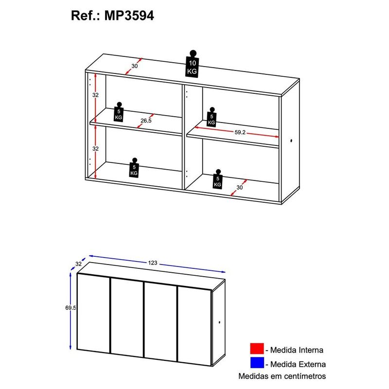 Casa e DecoraçãoMóveisBuffetAparador Buffet 4 Portas Suspenso Veneza Multimóveis Branco