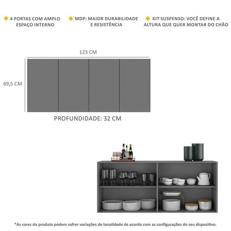Aparador Buffet 4 Portas Suspenso Veneza Multimóveis Grafite REF: 764851_Sicredi