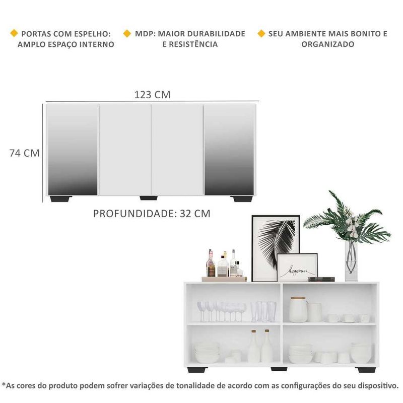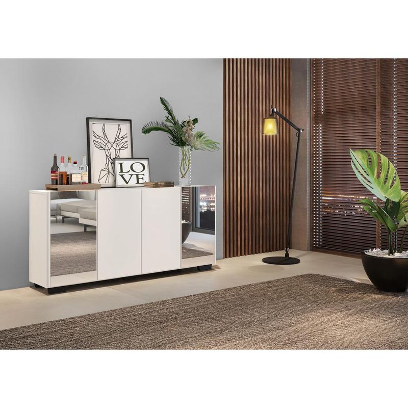 Casa e DecoraçãoMóveisBuffetAparador Buffet c/ Espelho e Pés Quadrados Vegas Multimóveis Branco/Preto