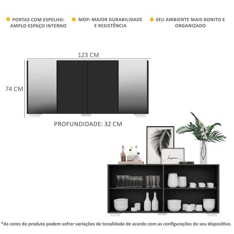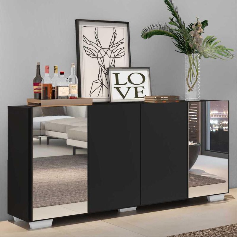 Casa e DecoraçãoMóveisBuffetAparador Buffet c/ Espelho e Pés Quadrados Vegas Multimóveis Preto/Branco