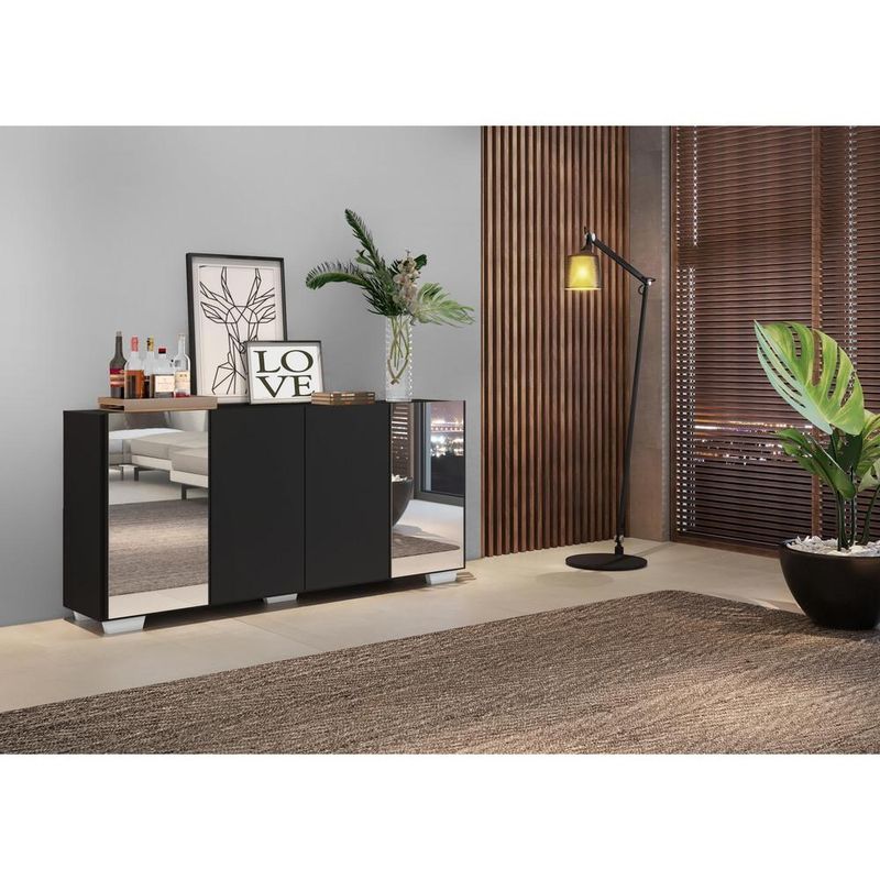 Aparador Buffet c/ Espelho e Pés Quadrados Vegas Multimóveis Preto/Branco REF: 771519_Sicredi