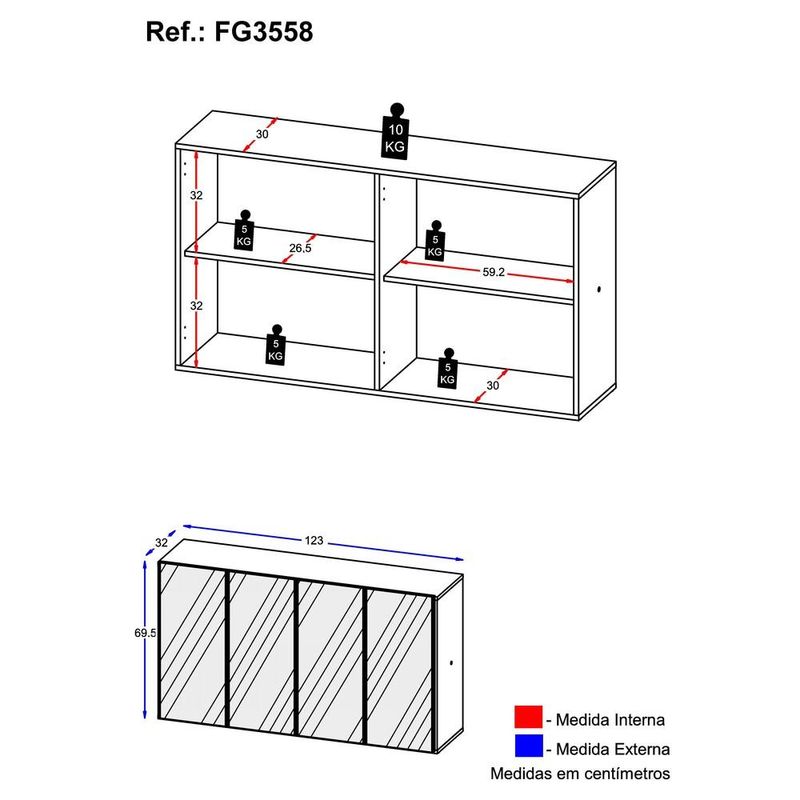 Casa e DecoraçãoMóveisBuffetAparador Buffet com Espelho Multimóveis Vegas 4 Portas FG3558 Rustic
