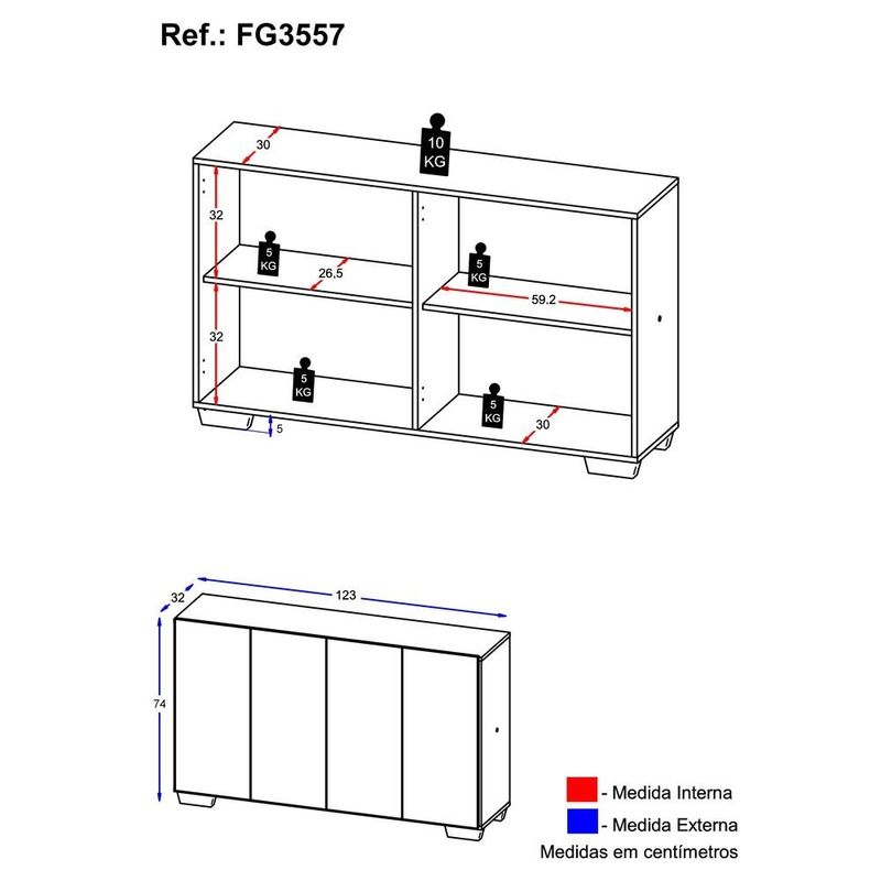 Casa e DecoraçãoMóveisBuffetAparador Buffet Multimóveis Veneza 4 Portas FG3557 Preto