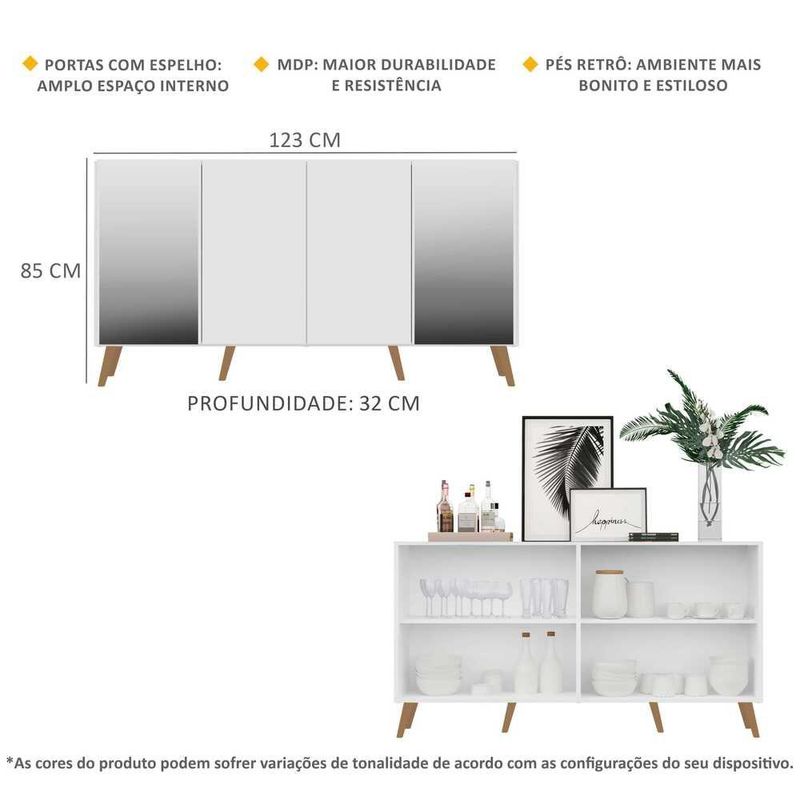Aparador Buffet Retrô com Espelho Multimóveis Vegas FG3562 Branco/Natural REF: 769715_Sicredi