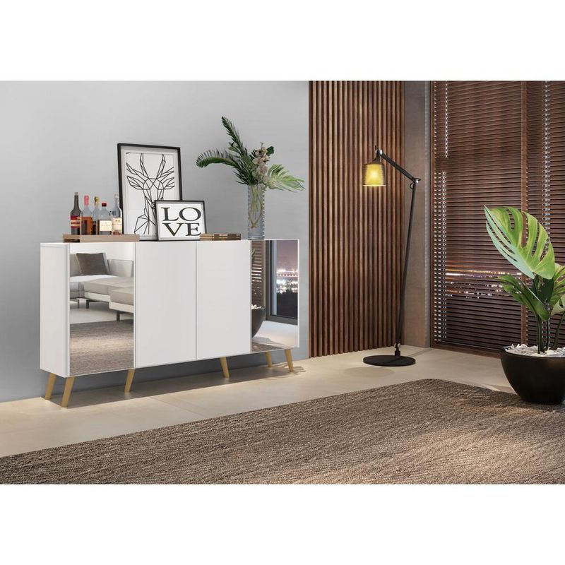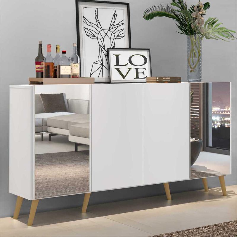Casa e DecoraçãoMóveisBuffetAparador Buffet Retrô com Espelho Multimóveis Vegas FG3562 Branco/Natural