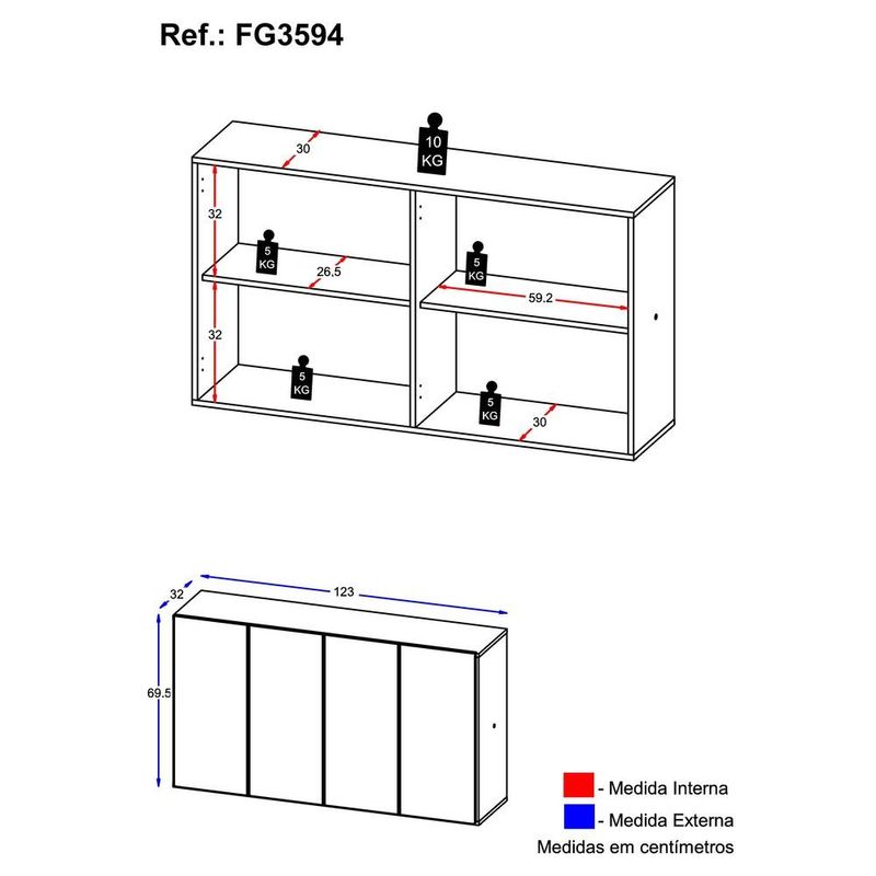 Casa e DecoraçãoMóveisBuffetAparador Buffet Suspenso Multimóveis Veneza 4 Portas FG3594 Branco