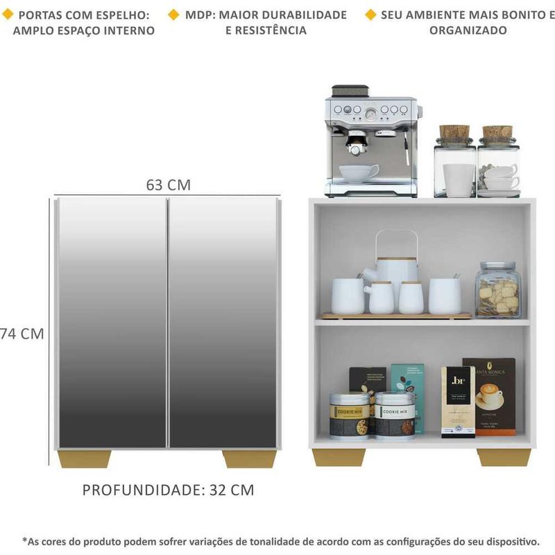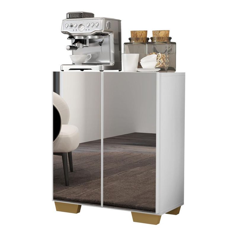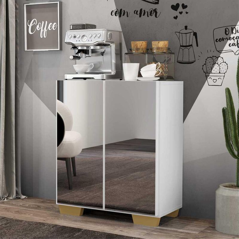Aparador Cantinho do Café com Espelho e Pés Quadrados 2 Portas Multimóveis Branco/Natural REF: 770742_Sicredi