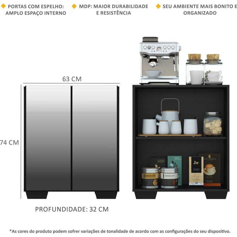 Aparador Cantinho do Café com Espelho e Pés Quadrados 2 Portas Multimóveis Preto REF: 569887_Sicredi