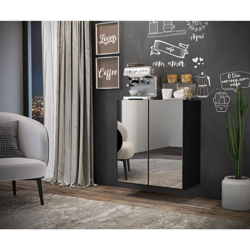 Aparador Cantinho do Café com Espelho Suspenso 2 Portas Multimóveis Preto REF: 765890_Sicredi