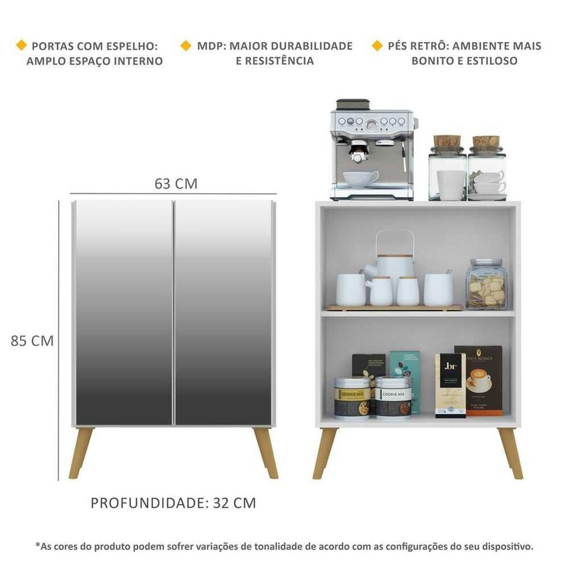Casa e DecoraçãoMóveisBuffetAparador Retrô com Espelho Multimóveis Cantinho do Café com 2 Portas FG3613 Branco/Natural