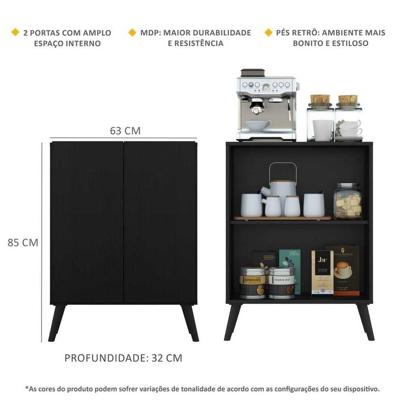 Aparador Retrô Multimóveis Cantinho do Café 2 Portas FG3609 Preto REF: 570853_Sicredi