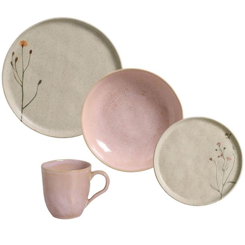 Casa e DecoraçãoUtilidades DomésticasAparelhos para JantarAparelho Jantar 16 Peças Campestre Litchi Porto Brasil Cerâmica Stoneware Rosa Mesa Posta