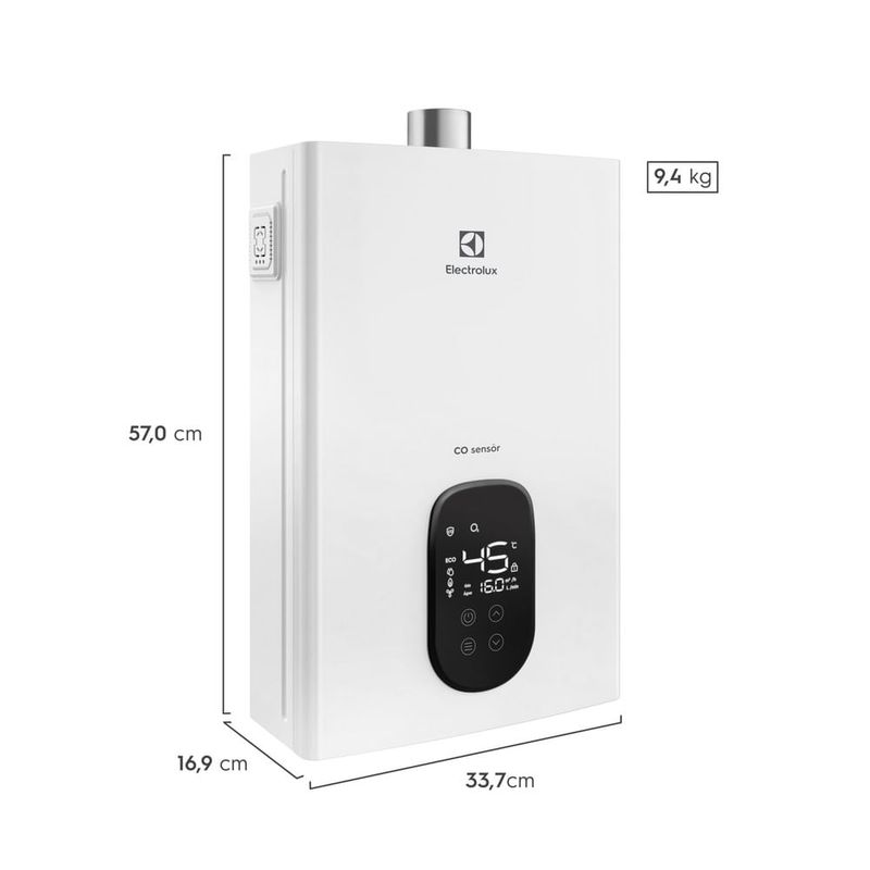 Aquecedor de Água a Gás Electrolux Exaustão Forçada 16L GLP Digital Experience com CO Sensor (H16BG) REF: 7909569477939