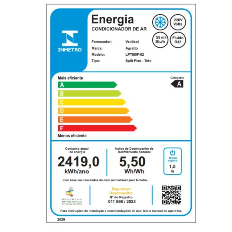 Ar Condicionado 55000 Btus LPTI60F Agratto Inverter Frio 220 V REF: 709913_Sicredi